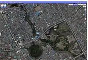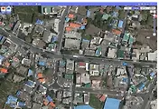 항공사진으로 본 크라운뷔페(파란색 도착지점)