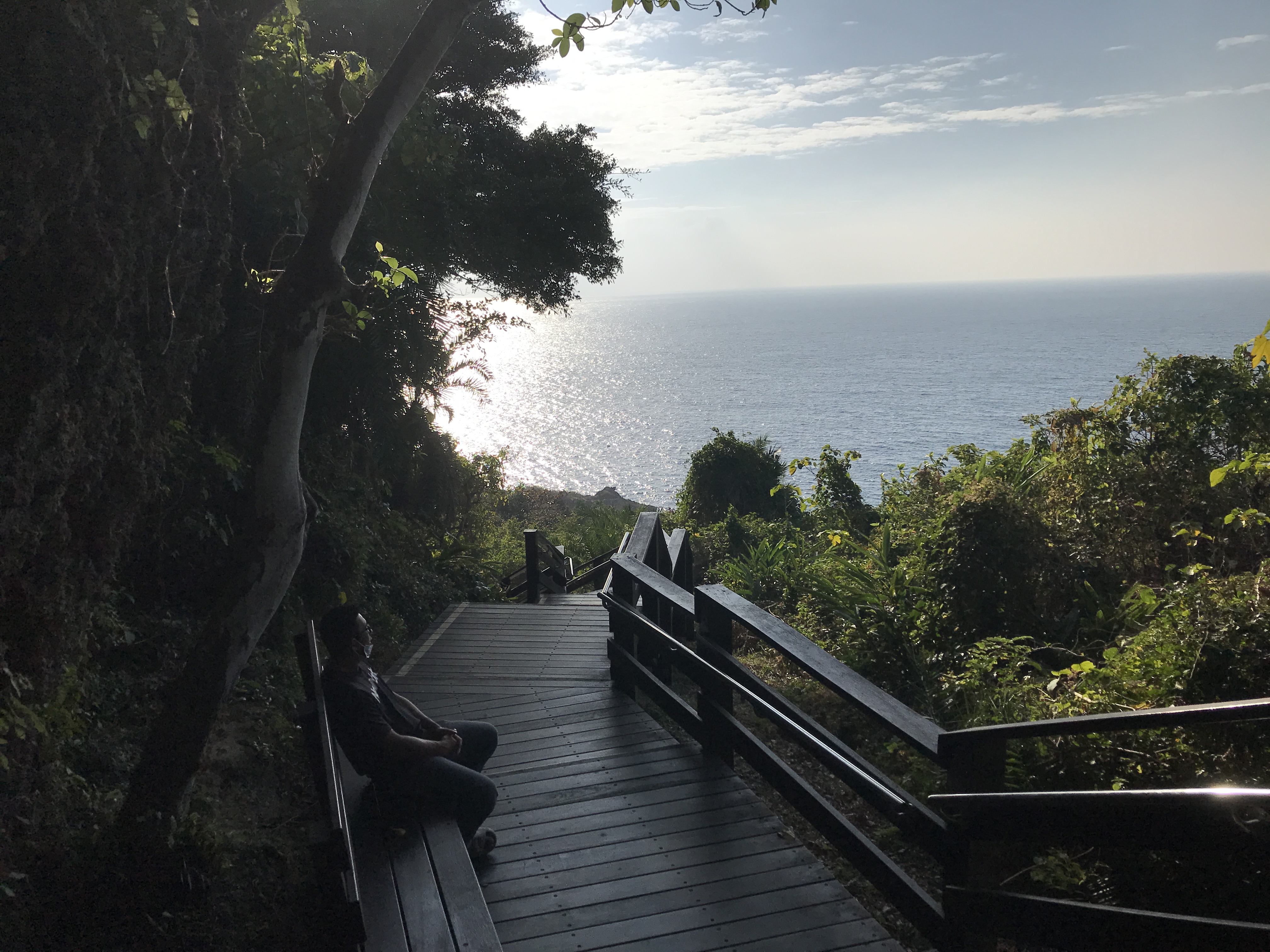 숲이 앞을 가려서 바다가 잘 보이지 않습니다.